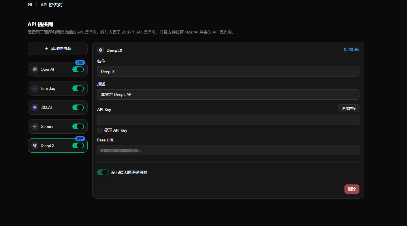 把配置好的地址填入deeplx重即可,其他的ai模型的配置也可以按需取用